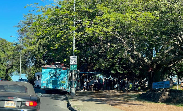 ツアーバスがここに止まるようになって