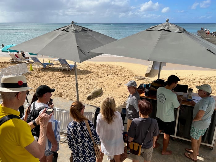 HMAR(Hawaii Marine Animal Response)の方が見守ってくれてます。