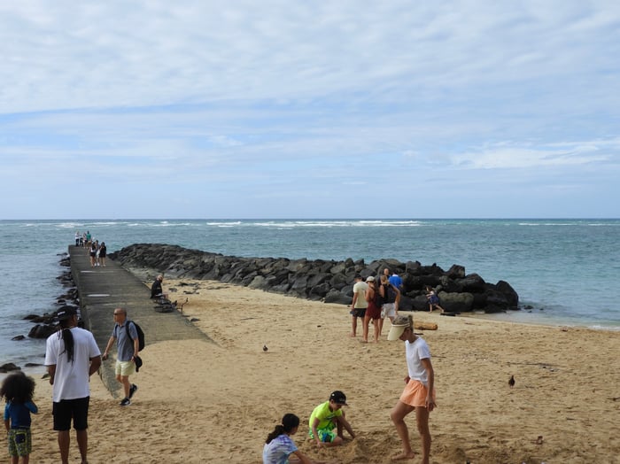 たくさんの人がビーチに来ています。
