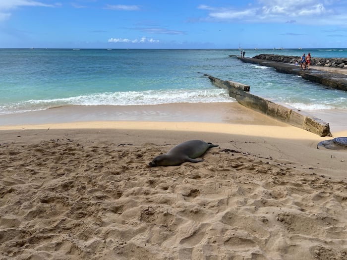 このBaby Monksealも海から上がって来ました。