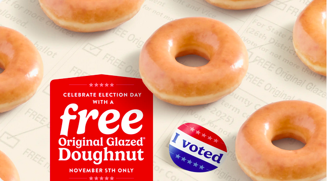 Krispy Kreme Doughnutsなどは、投票を終えたI votedのステッカーを