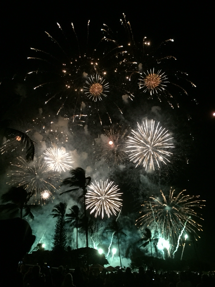 ワイキキでもビーチで大きな花火が上がります。