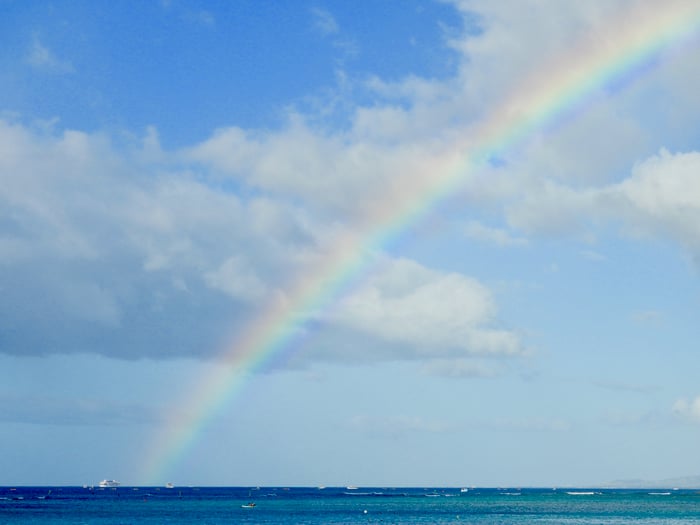 今朝は輝く虹がお出迎え。