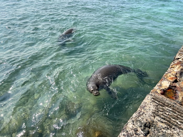 いつもはビーチでお昼寝姿のモンクシールですが