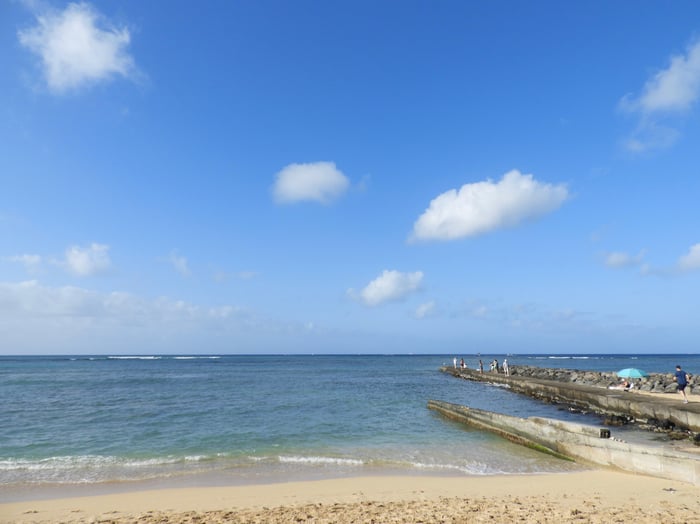 ビーチも人影少なめです。