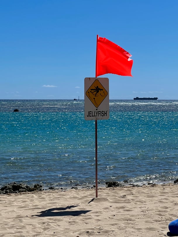 アラモアナビーチではJellyfishのサインが出てました。