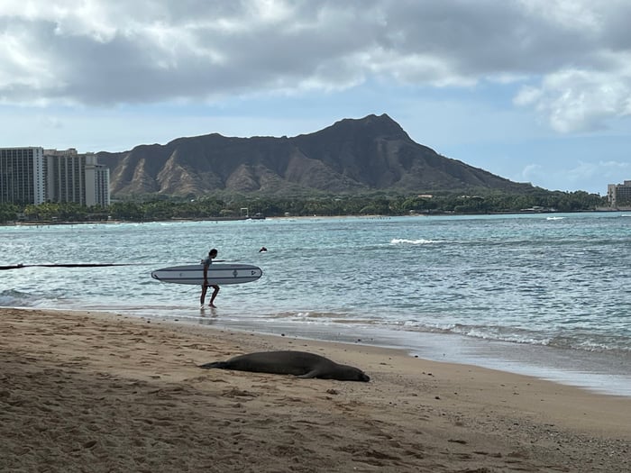 今日はハワイのシンボル、Diamond Headをバックにスヤスヤ(^ ^)