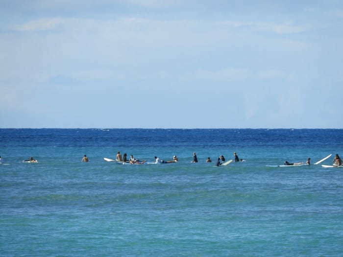 今朝はサーフレッスンも花盛り。