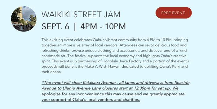 明日はカラカウア通りでWaikiki Street Jam.