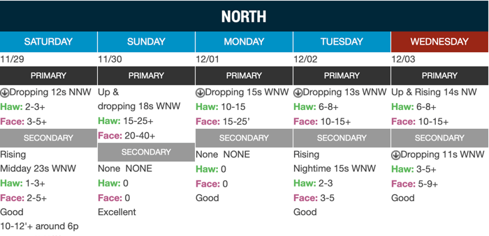 明日のノースの予報は15-25'+の予報。