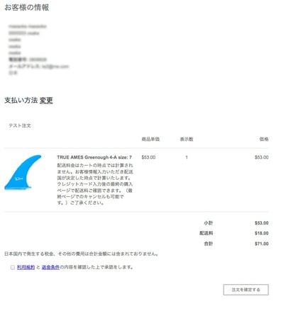 精算のページでは配送料は¥0の表示になっております。