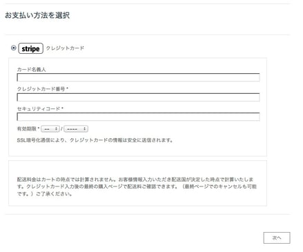 3.クレジットカード入力ページ