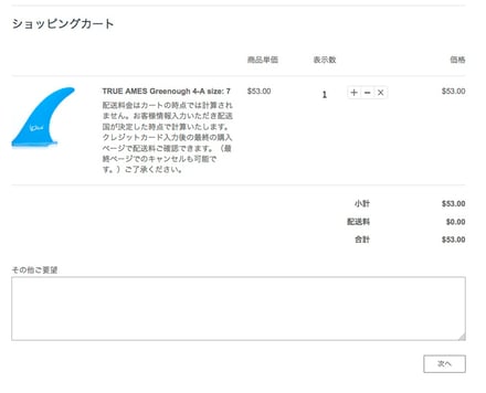 この時点では配送料が「¥0」です。