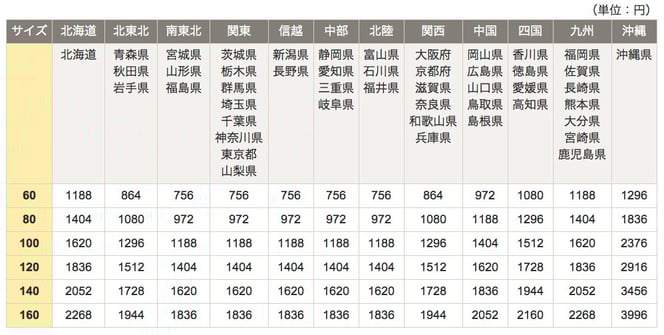 下記の送料をご参考にご検討ください。