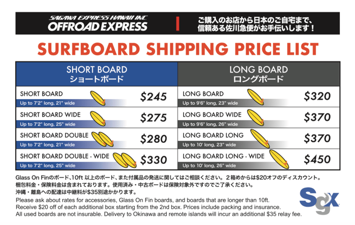 サーフボード送料、代引手数料、輸入消費税を佐川急便にお支払いください。